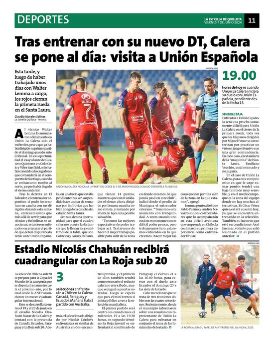 6Tras entrenar con su nuevo DT, Calera se pone al día: visita a Unión Española Pág. 11
