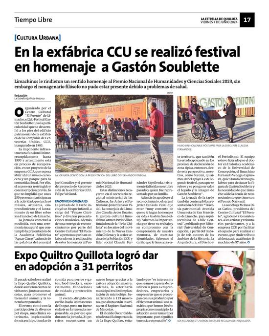 11En la exfábrica CCU se realizó festival en homenaje a Gastón Soublette Pág. 17