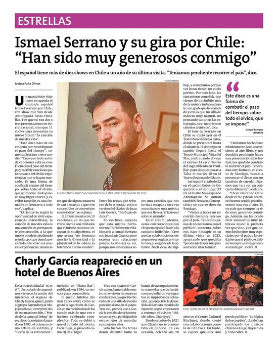 14Ismael Serrano y su gira por Chile: "Han sido muy generosos conmigo" Pág. 18