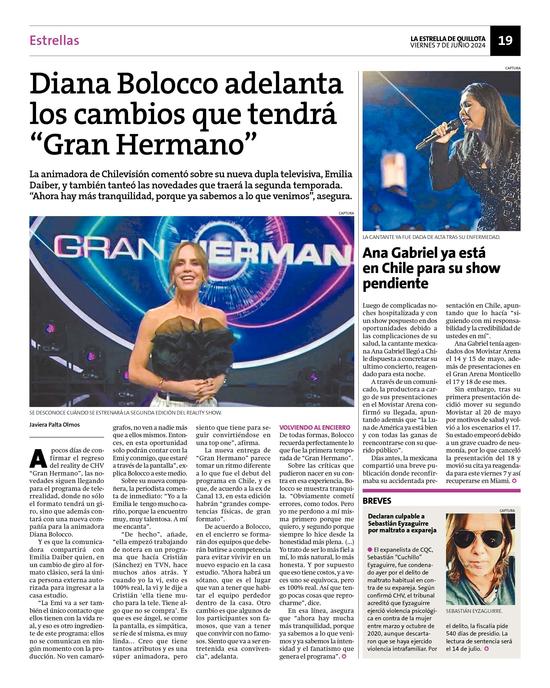 36Diana Bolocco adelanta los cambios que tendrá "Gran Hermano" Pág. 19