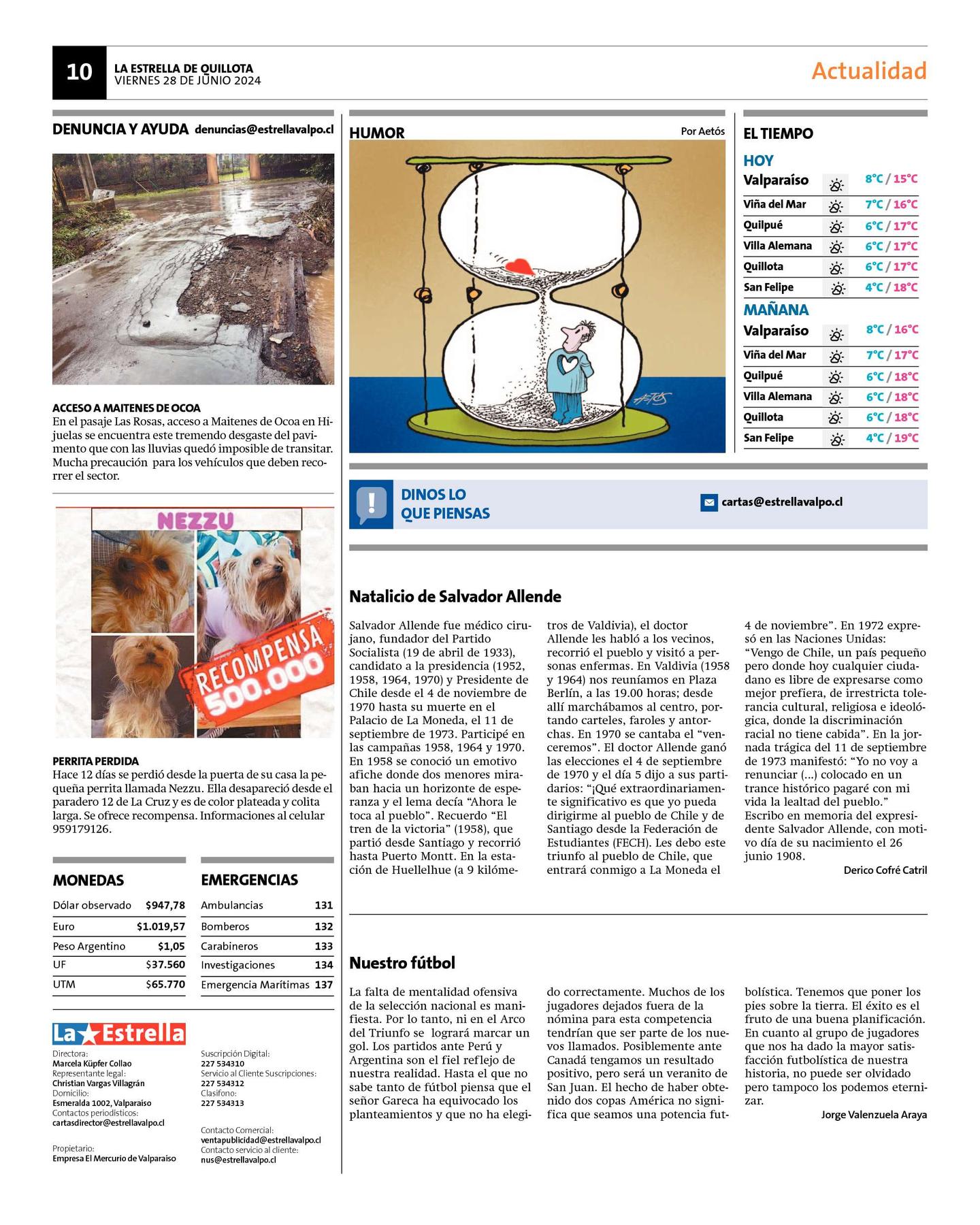 Salvador Allende fue médico cirujano, fundador del Partido Socialista (19 de abril de 1933), candidato a la presidencia (1952, 1958, 1964, 1970) y Presidente de Chile desde el 4 de noviembre de 1970 hasta su muerte en el Palacio de La Moneda, el 11 de septiembre de 1973. Participé en las campañas 1958, 1964 y 1970. En 1958 se conoció un emotivo afiche donde dos menores miraban hacia un horizonte de esperanza y el lema decía "Ahora le toca al pueblo". Recuerdo "El tren de la victoria" (1958), que partió desde Santiago y recorrió hasta Puerto Montt. En la estación de Huellelhue (a 9 kilómetros de Valdivia), el doctor Allende les habló a los vecinos, recorrió el pueblo y visitó a personas enfermas. En Valdivia (1958 y 1964) nos reuníamos en Plaza Berlín, a las 19.00 horas; desde allí marchábamos al centro, portando carteles, faroles y antorchas. En 1970 se cantaba el "venceremos". El doctor Allende ganó las elecciones el 4 de septiembre de 1970 y el día 5 dijo a sus partidarios: "¡Qué extraordinariamente significativo es que yo pueda dirigirme al pueblo de Chile y de Santiago desde la Federación de Estudiantes (FECH). Les debo este triunfo al pueblo de Chile, que entrará conmigo a La Moneda el 4 de noviembre". En 1972 expresó en las Naciones Unidas: "Vengo de Chile, un país pequeño pero donde hoy cualquier ciudadano es libre de expresarse como mejor prefiera, de irrestricta tolerancia cultural, religiosa e ideológica, donde la discriminación racial no tiene cabida". En la jornada trágica del 11 de septiembre de 1973 manifestó: "Yo no voy a renunciar (...) colocado en un trance histórico pagaré con mi vida la lealtad del pueblo." Escribo en memoria del expresidente Salvador Allende, con motivo día de su nacimiento el 26 junio 1908.