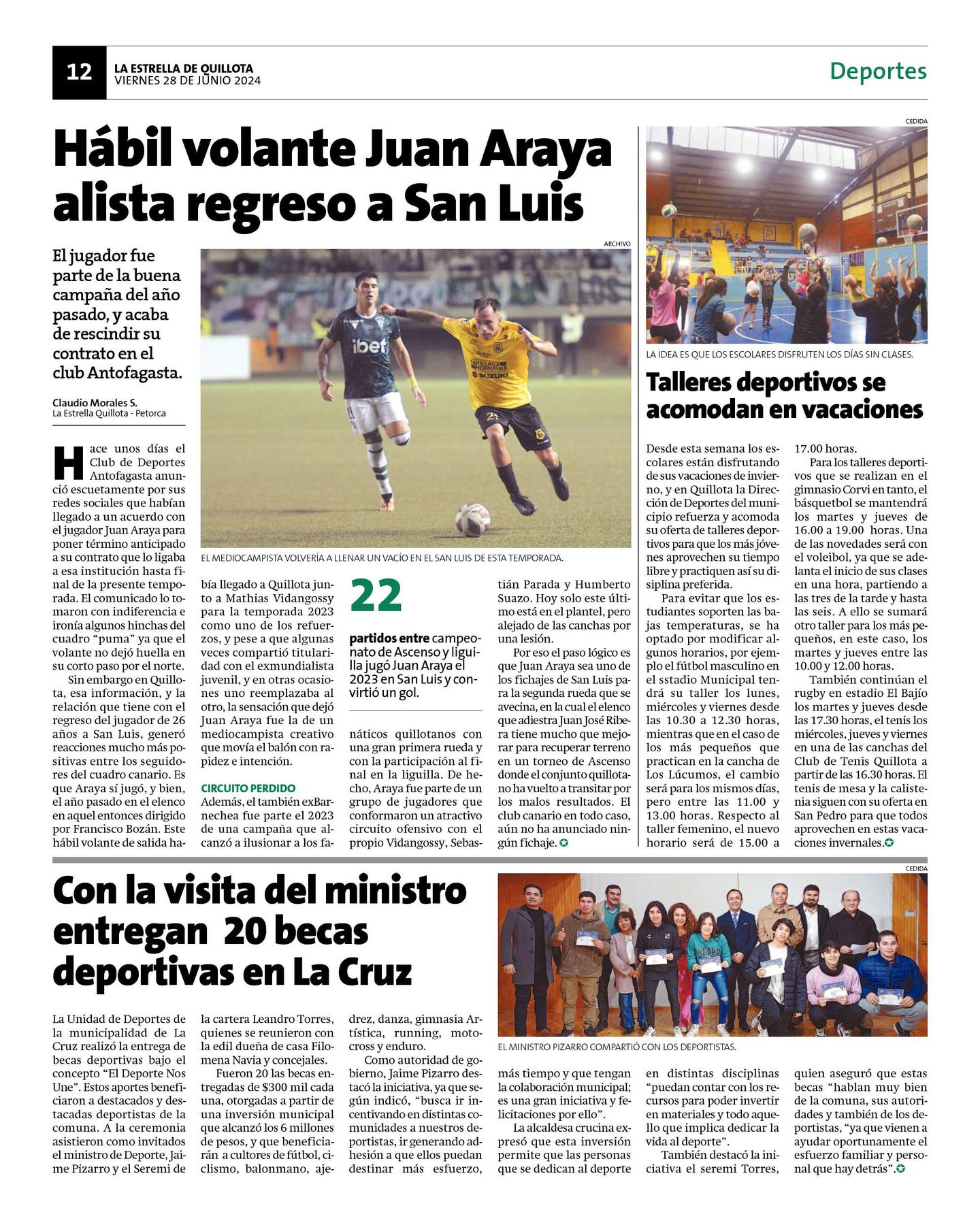 Por eso el paso lógico es que Juan Araya sea uno de los fichajes de San Luis para la segunda rueda que se avecina, en la cual el elenco que adiestra Juan José Ribera tiene mucho que mejorar para recuperar terreno en un torneo de Ascenso donde el conjunto quillotano ha vuelto a transitar por los malos resultados. El club canario en todo caso, aún no ha anunciado ningún fichaje. J