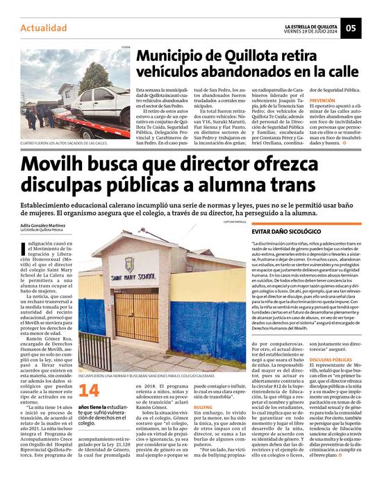 29Movilh busca que director ofrezca disculpas públicas a alumna trans Pág. 5
