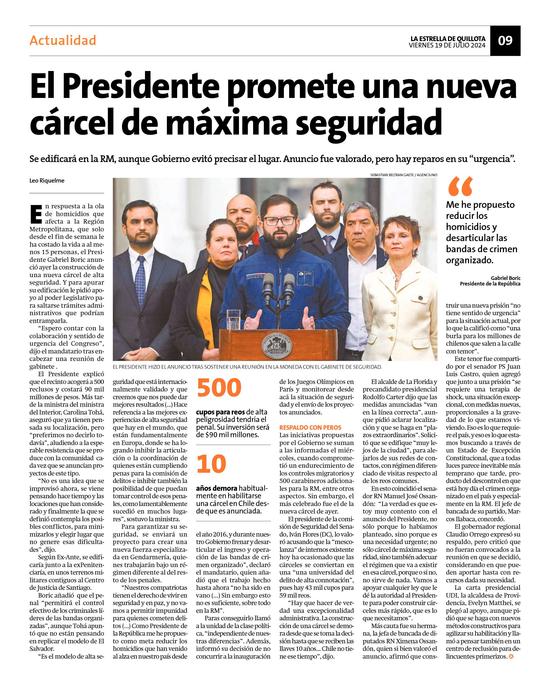 19El Presidente promete una nueva cárcel de máxima seguridad Pág. 9