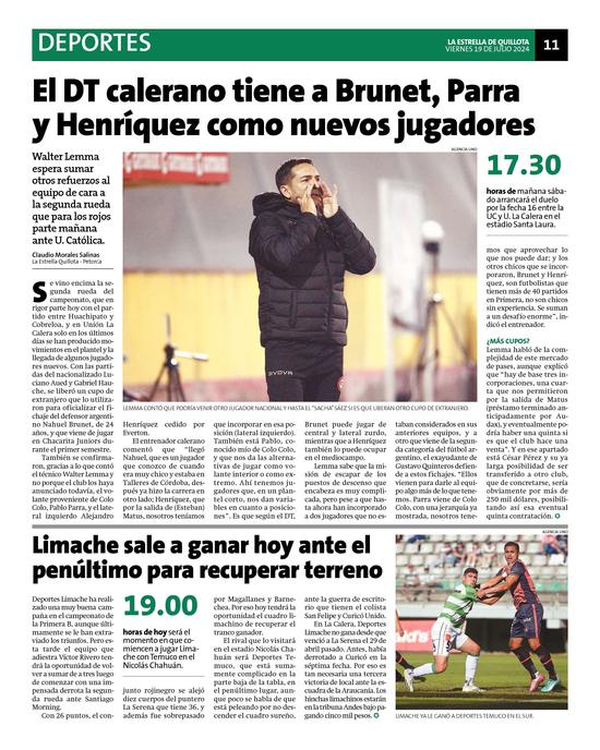6Limache sale a ganar hoy ante el penúltimo para recuperar terreno Pág. 11