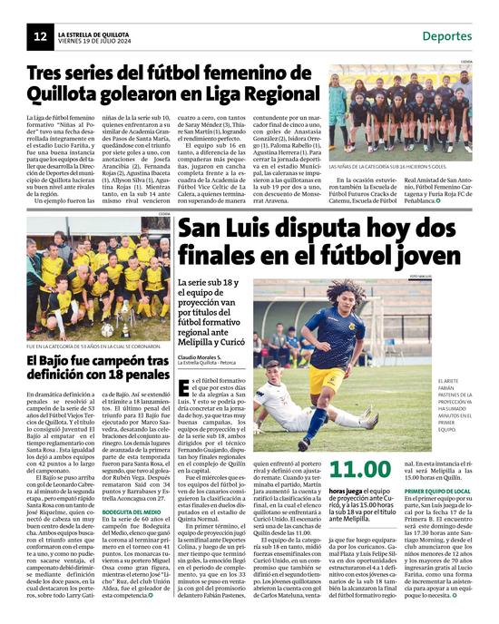 2Tres series del fútbol femenino de Quillota golearon en Liga Regional Pág. 12