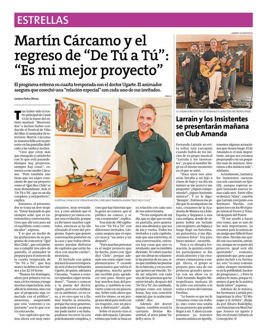 14Martín Cárcamo y el regreso de "De Tú a Tú": "Es mi mejor proyecto" Pág. 18
