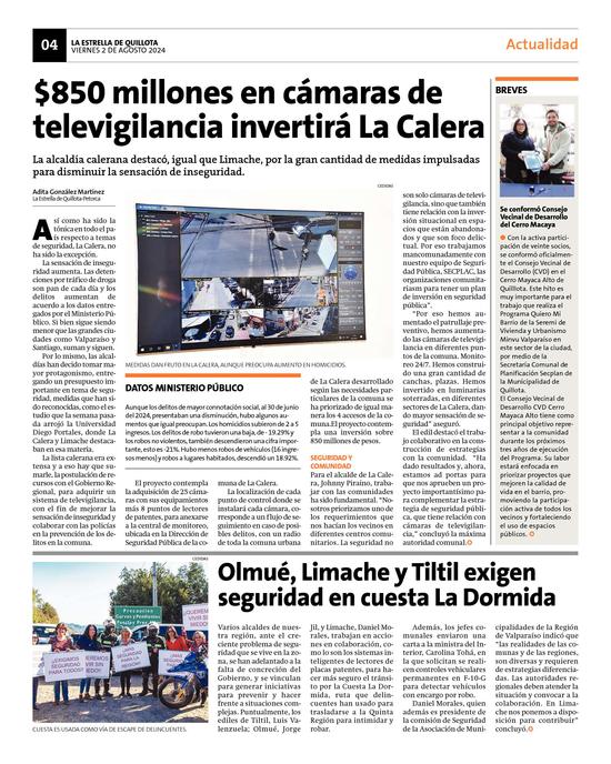 24$850 millones en cámaras de televigilancia invertirá La Calera Pág. 4