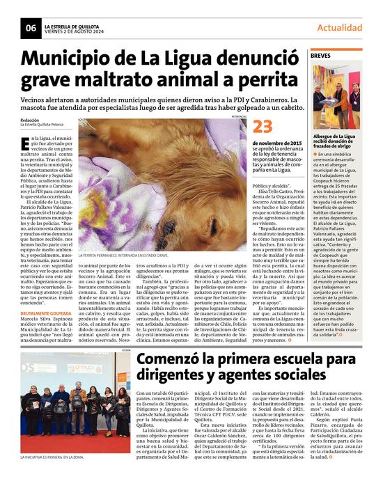 33Municipio de La Ligua denunció grave maltrato animal a perrita Pág. 6