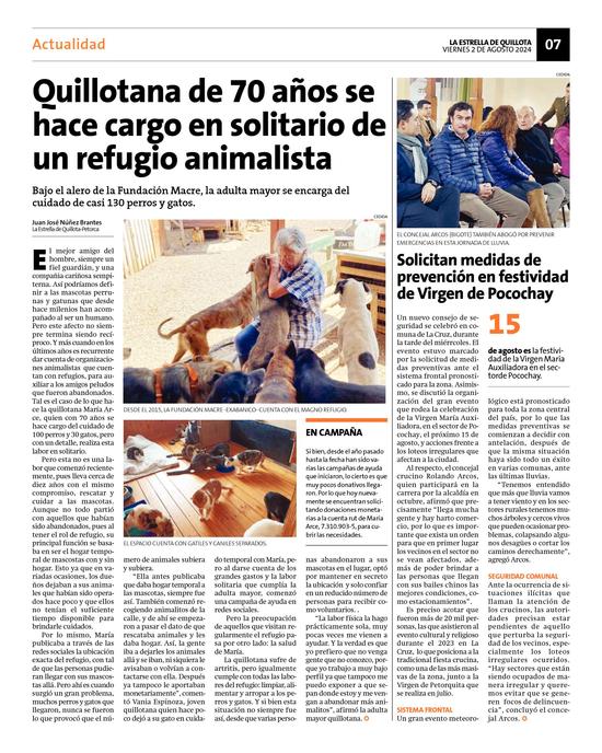 35Quillotana de 70 años se hace cargo en solitario de un refugio animalista Pág. 7