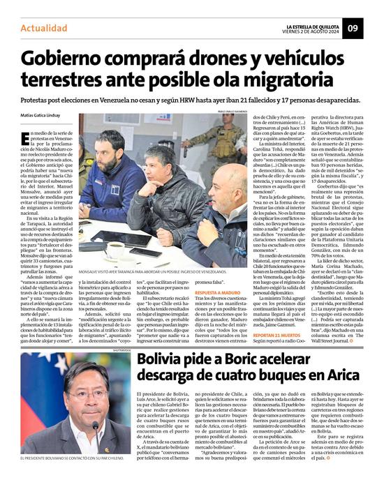 38Bolivia pide a Boric acelerar descarga de cuatro buques en Arica Pág. 9
