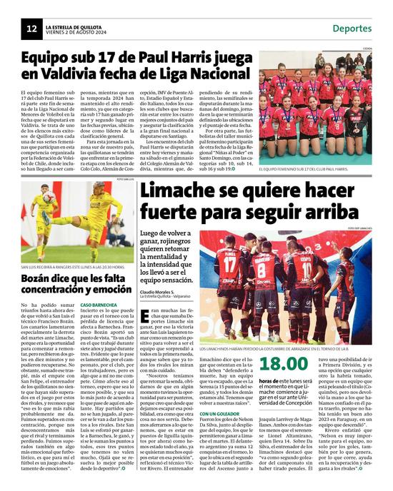 6Equipo sub 17 de Paul Harris juega en Valdivia fecha de Liga Nacional Pág. 12